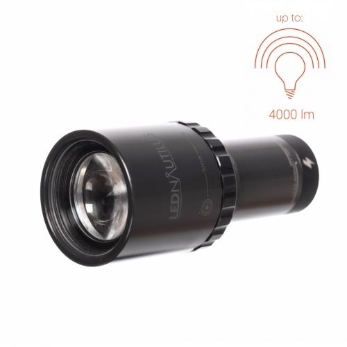 Il LED NAUTILUS è una torcia subacquea innovativa con un angolo del fascio luminoso regolabile da 9° a 45°, che consente ai subacquei di personalizzare l'illuminazione secondo le necessità. Utilizzando la più recente tecnologia COB Cree CXB, offre una luminosità fino a 4000 lumen, garantendo un'eccezionale visibilità in diverse condizioni. Con tre impostazioni di luminosità (BOOST, OPERATIONAL e BACK-UP), permette di regolare il consumo della batteria e l'intensità della luce in base alle esigenze e alle condizioni dell'immersione. Il design modulare è compatibile con vari cavi e batterie, consentendo una personalizzazione secondo le necessità individuali del subacqueo. Realizzato con materiali di alta qualità, offre resistenza alla corrosione e ai danni meccanici ed è testato per l'uso fino a una profondità di 150 metri.