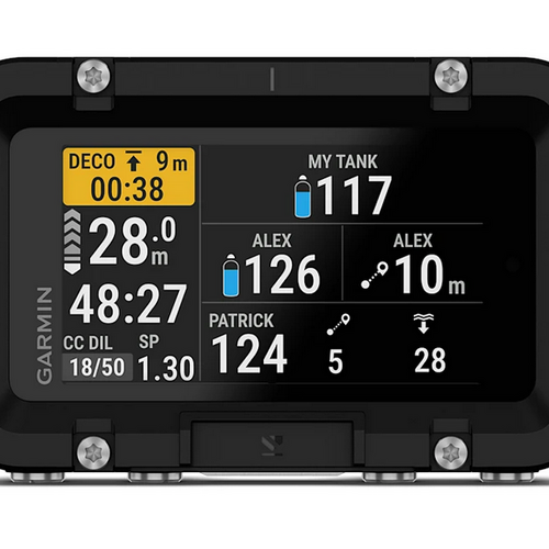 The Garmin Descent X50i is a premium dive computer featuring a 3-inch color touchscreen display that provides clear visualization of essential data during dives. Equipped with SubWave™ sonar technology, it facilitates diver-to-diver communication and monitors tank pressure for up to eight divers, ensuring enhanced safety. The integrated backup dive light improves visibility in dark environments. With its robust design, sapphire crystal, and water resistance up to 20 ATM, the Descent X50i is a reliable companion for serious divers.