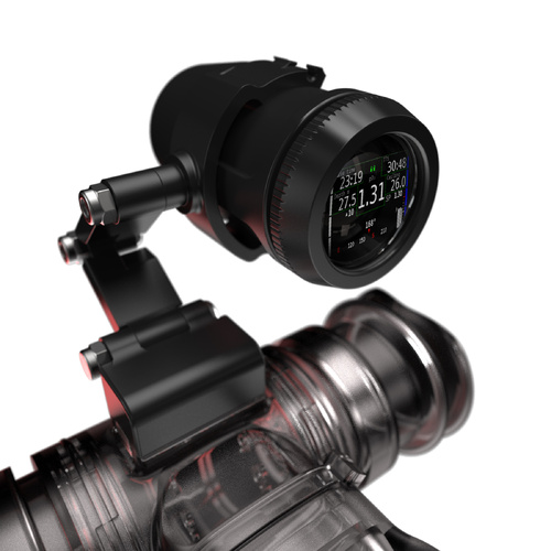 Il supporto regolabile è abbastanza stabile da resistere alla guida di uno scooter, così avrai sempre il tuo ODA in vista. L'ODA è collegato alla testa Liberty Edition 2021 tramite il connettore HUD/BD. Il display stesso è collegato al DSV o al BOV sul binario allo stesso modo dell'HUD.