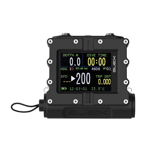 The SUEX ERON D‑1 is an advanced underwater dashboard and control module for DPVs. It wirelessly receives real‑time data from the DPV and displays dive, navigation and vehicle status information. It can be mounted on the DPV handle or worn on the wrist and is the central interface in the DRIVe navigation system.