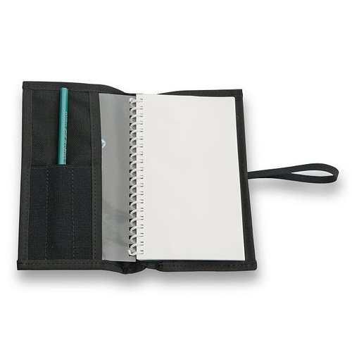 Indispensabile per ogni subacqueo, marinaio o turista. Quaderno impermeabile realizzato con un foglio di plastica progettato per scrivere sott'acqua. La copertura è cucita in Cordura. Dispone di tasche per matite e compasso e anche di un occhiello per l'aggancio di un moschettone a doppia estremità.